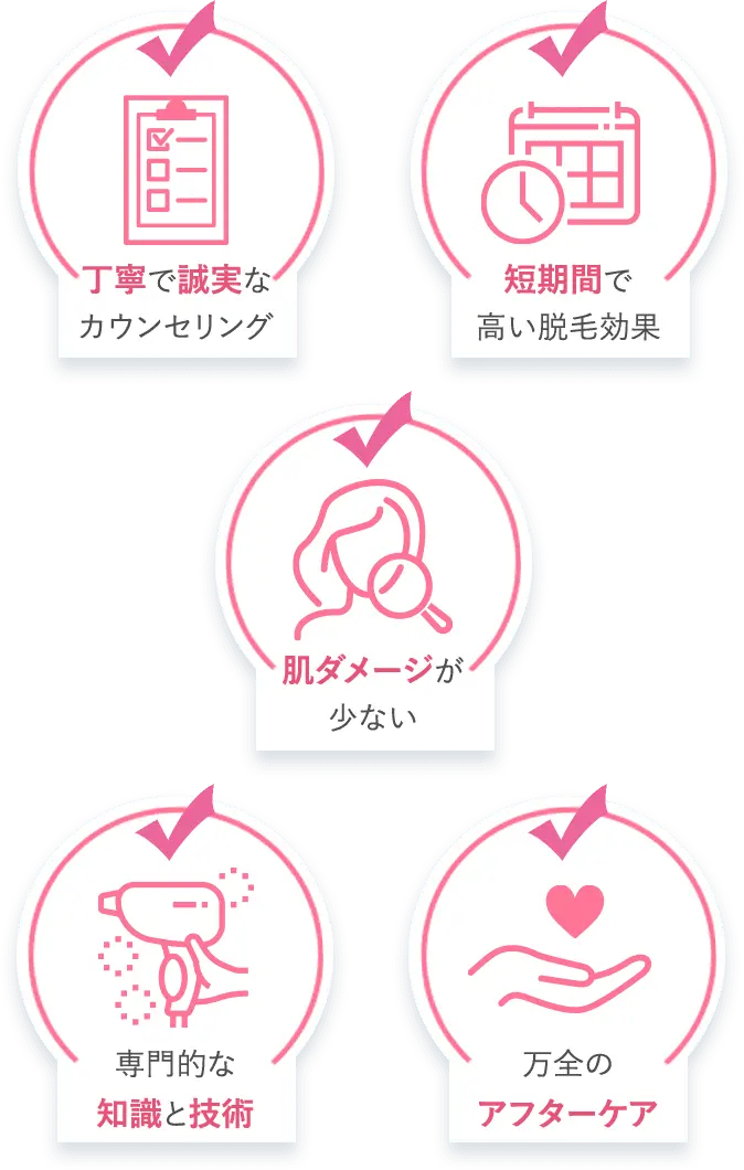 医療脱毛は、複数回施術を重ねることで効果を発揮します。一緒にツルツルでノンストレスなお肌を目指しましょう。